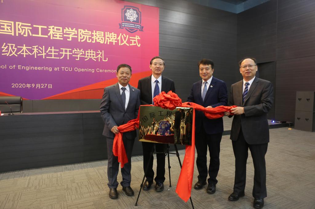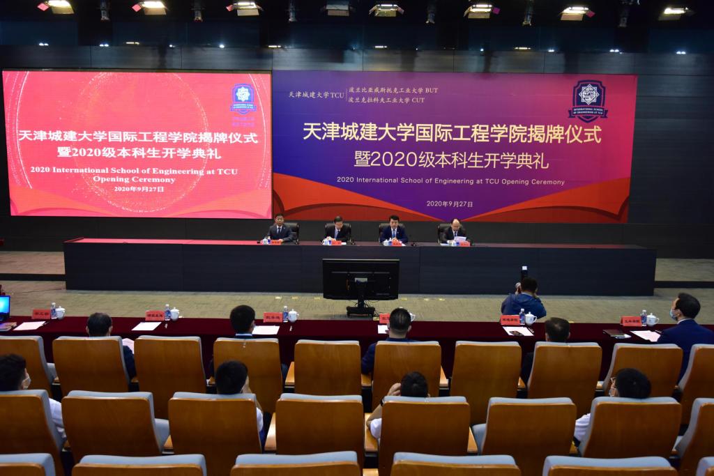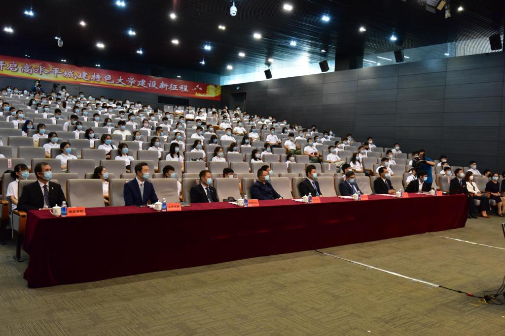 天津市教委国际交流处处长张华泉,公司建筑公司、土木公司、环境公司以及党办校办、教务处、研究生处、学工部、国际交流处负责人,2020级全体本科生参加典礼。