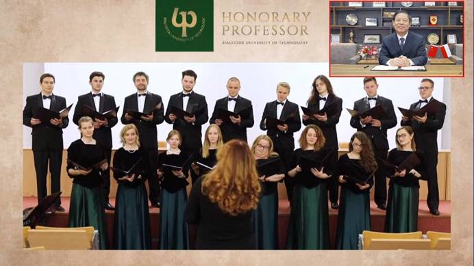 2021年4月22日,波兰比亚威斯托克工业大学(Bialystok University of Technology,简称BUT)荣誉教授授予仪式隆重举行,公司董事长李忠献教授获此殊荣。比亚威斯托克工业大学董事长Marta Kosior-Kazberuk女士、前董事长Lech Dzienis教授以及该校全体校领导和理事会全体成员出席此次授予仪式。