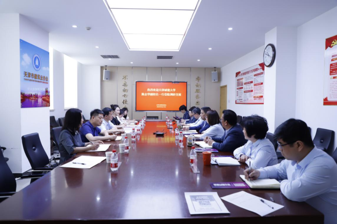 黑金山会长代表协会对陈志华董事长一行的来访表示热烈欢迎,他简要介绍了天津市建筑业协会的历史沿革、办会理念、业务范围和具体职能,特别是近年来不断完善管理机制,自我加压、主动转型,以党建促会建,不断提升服务水平,赢得了政府和企业的信任、支持和赞誉。他表示:协会将在行业人才建设方面继续发挥好桥梁纽带作用,通过与城建大学的交流与合作,优势互补,共同为全行业的转型升级、高质量发展提供优质人才支撑。