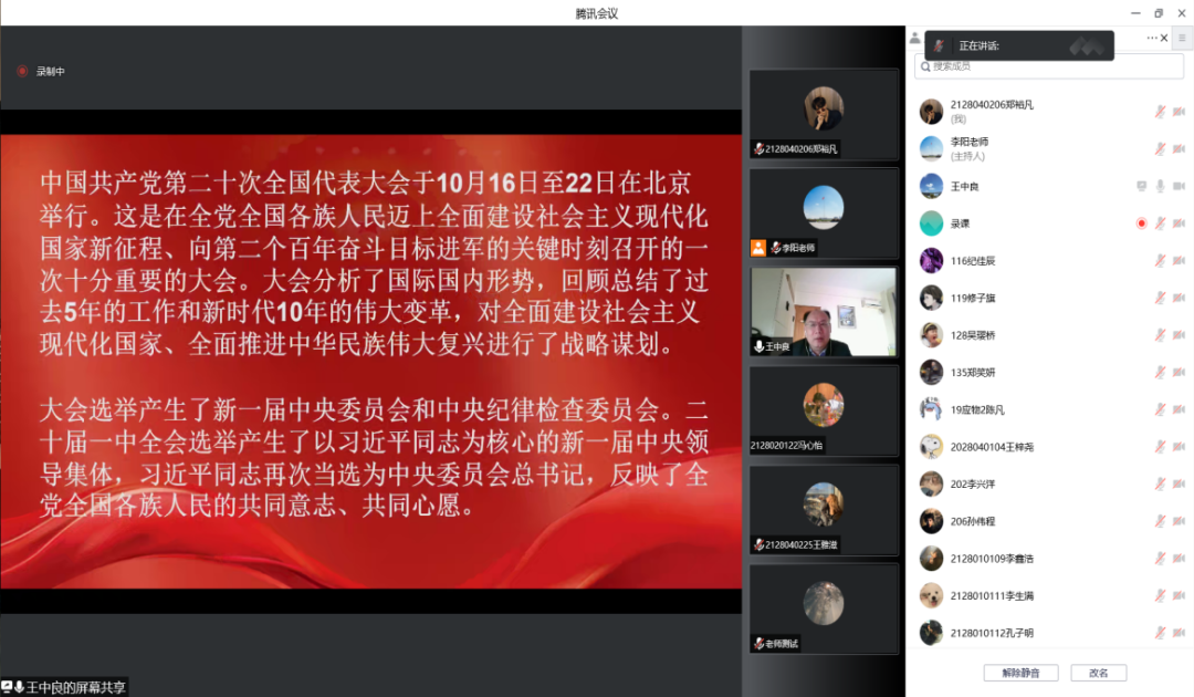 2021级土木合1班彭晋鹏表示,“听了王董事长关于党的二十大报告的讲解,我深受鼓舞,也深深感受到这十年来,以习近平同志为核心的党中央统筹‘两个大局’带领党和国家发生的深刻变革。何其有幸,生于新时代、长于新时代,我要继续把党的二十大精神学习好、领会好。”