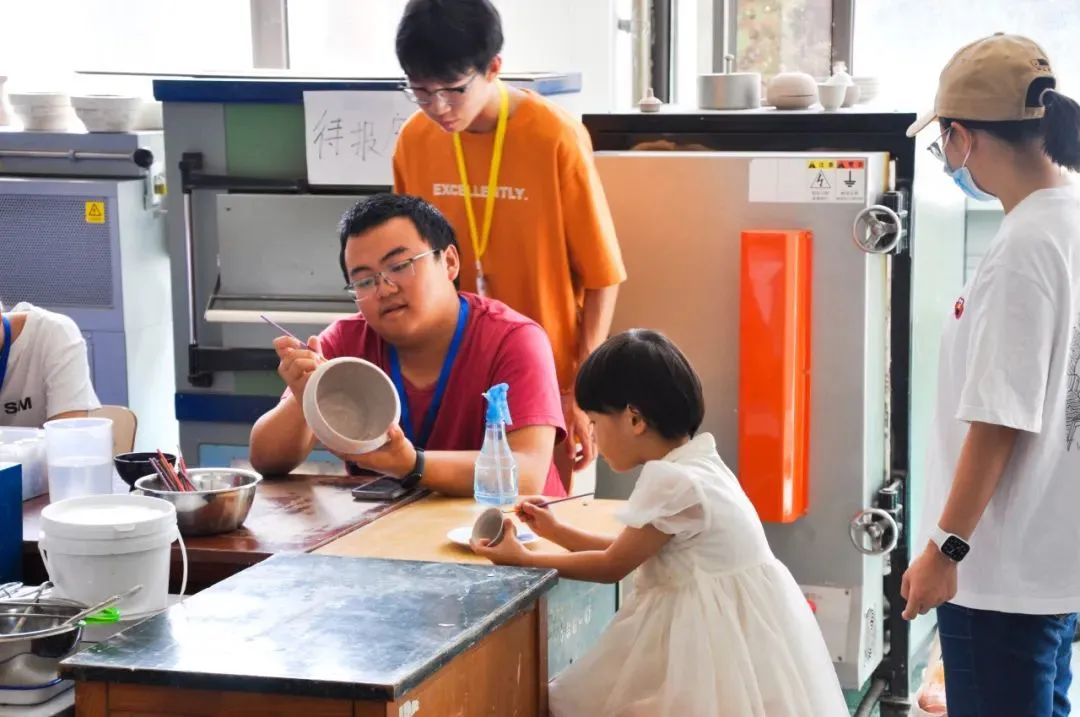 材料科学与工程公司举办材料文化空间展,在陶瓷科普基地,员工亲子之间一同进行陶艺制作,在动手制作中升华爱校荣校之情。