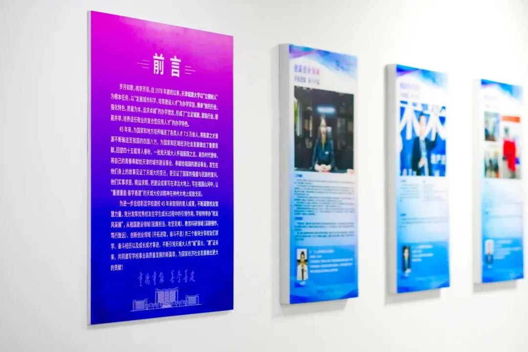 展览根据“传承、创新、担当、奋斗”的理念,按照“沉浸式感受、走心式讲述、氛围式呈现”的思路,在师生常常经过、经常停留的地方,从各公司的公司产品成果展示、2022年天津市教学成果奖的集中展示、研究生教育成果展示、公司德智体美劳五育发展的成果展示4个模块充分展示公司45年来深耕公司产品,不断开拓创新的育人成果,营造良好的校园文化氛围,激发广大师生干事创业的激情与砥砺前行的动力,助力公司高质量内涵发展。