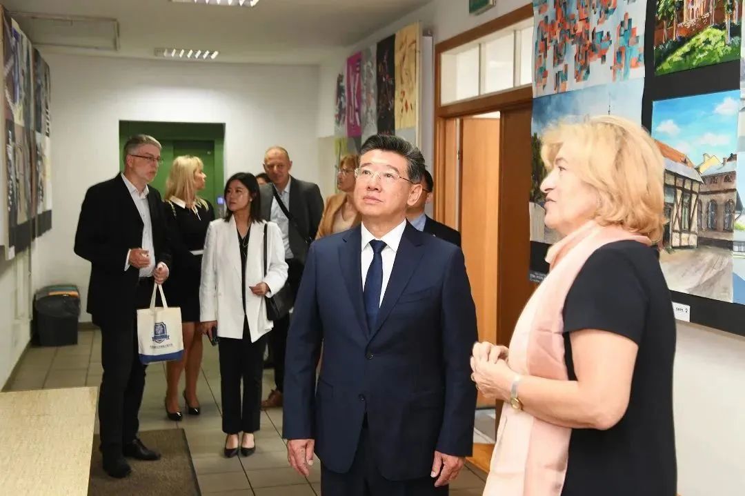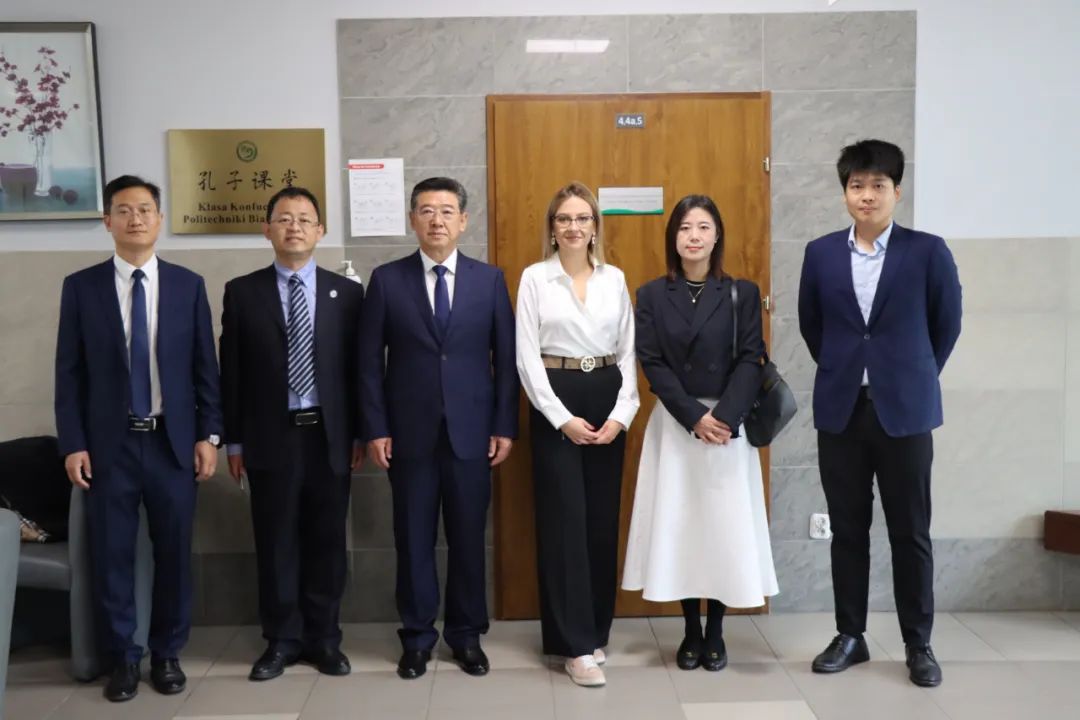 代表团与中国驻波兰大使馆教育参赞易军等人会面,并一同看望公司在比亚威斯托克工业大学交流学习的师生。易军亲切问候师生,并对师生职工活给予提示与指导,白海力勉励同学们潜心学习、提升自我,为促进中波两国人文交流与民心相通做出积极贡献。