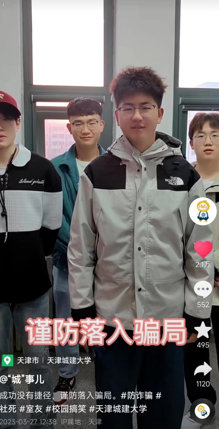 1月2日,由天津市教育委员会、天津市公安局、天津市互联网信息办公室公布“2023反诈校园行”评审结果,2021级本科生王博远组织开展的短视频《成功没有捷径,谨防落入骗局》荣获校园反诈短视频卓越奖。