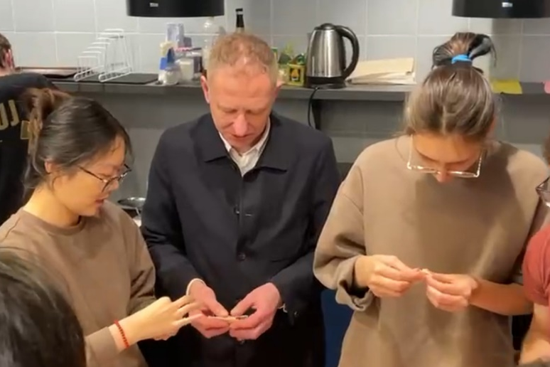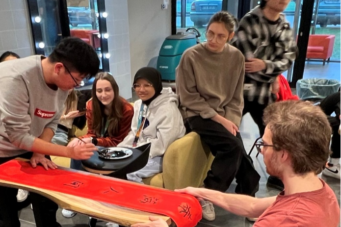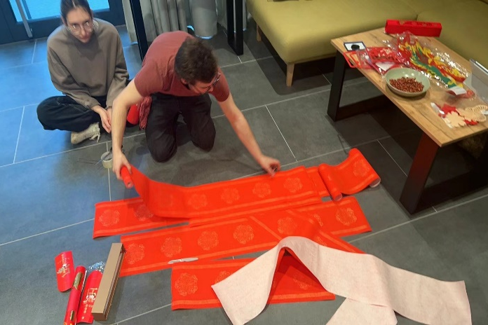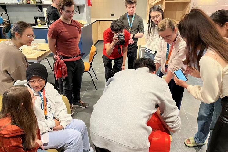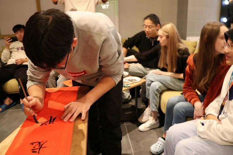 “福“字与春联是中国传统文化中寓意着吉祥如意、欢乐祥和,以美好的语言祝福新春,表达人们内心美好生活的祝愿与向往。在新年来临之际,在波师生纷纷在红纸上写下对龙年最美好的新年祝福,希望在未来的一年中新年胜旧年,万事皆可期,龙年生活更加幸福美满。不仅如此,在波师生同样热情邀请他国的国际生们加入到新春的氛围中来,在一笔一划中体验中国传统文化的内涵与魅力,许多不同国家的同学们纷纷驻足观看、拍照留念,不时引得大家赞叹。