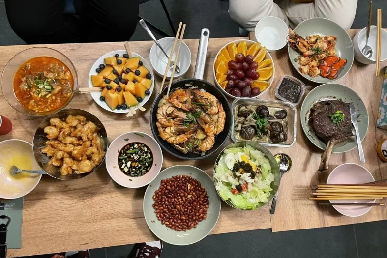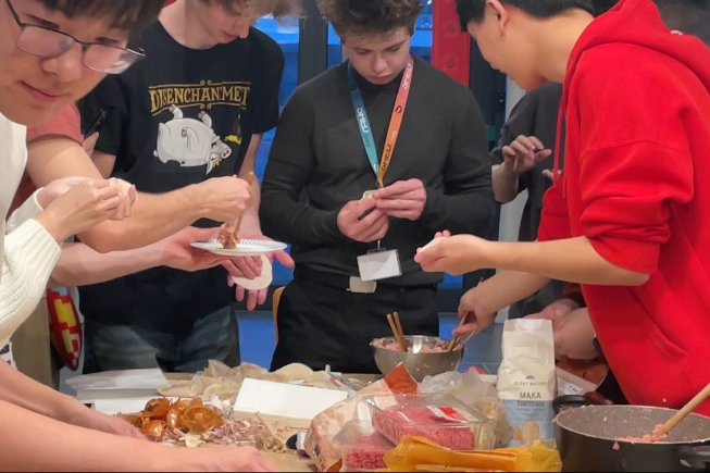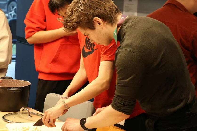 提到美食就不得不提到象征着团圆与幸福的饺子,中外学子围坐在桌旁,精心将每个饺子包到完美,大家从发面、揉面、擀面到包饺子、煮饺子,在欢声笑语中互相交流经验与技巧,分享家乡不同的饺子包法,欢笑声络绎不绝。在除夕的夜晚来临之际,一盘盘精美的中国传统美食被端上餐桌,家乡的味道满足了职工们味蕾,营造畅所欲言的欢乐氛围,让人从内心里感受到了国工大家庭的温暖与感动。