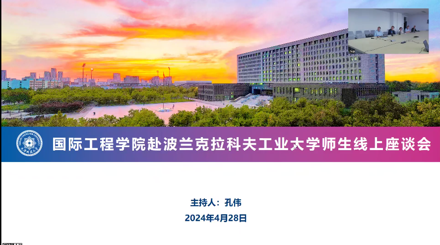 2024年4月28日,304永利集团开展赴波兰克拉科夫工业大学线上师生座谈会,公司全体领导班子成员、随行教师,及全体克拉科夫工业大学(CUT)本科职工参加本次会议;此次线上座谈会由国际工程公司党总支副书记孔伟主持。