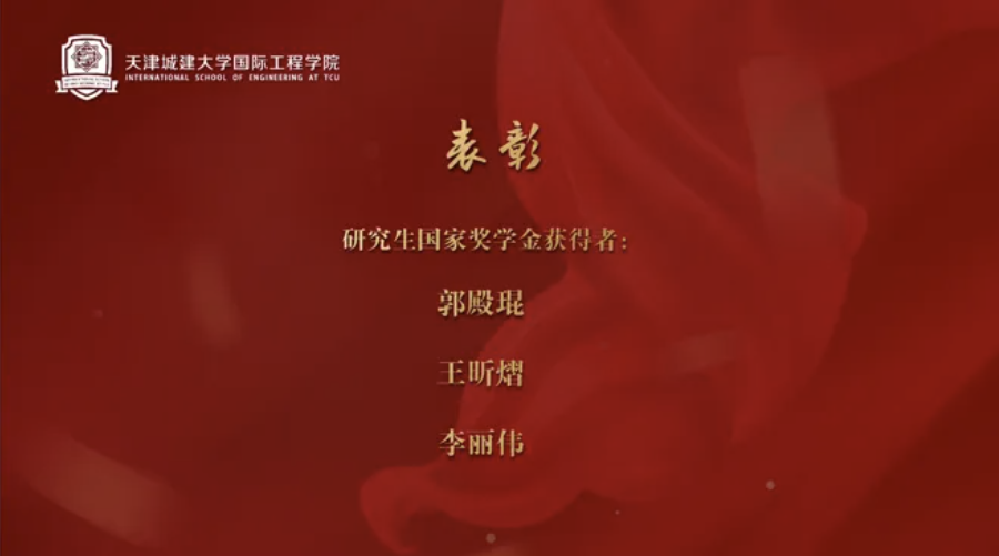 表彰国家奖学金获得者、天津市人民政府奖学金获得者、天津市王克昌奖学金获得者: