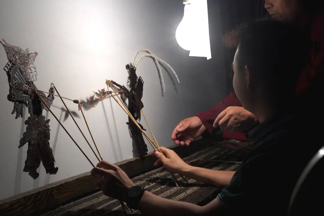 在环州故城,团队聚焦国家级非物质文化遗产“环县皮影”,走进博物馆深入了解其历史、造型与工艺,在非遗传承人指导下亲自体验雕刻、染色与表演。通过访谈的形式,引导传承人用普通话讲述从艺与传承故事,为这项古老艺术注入新的语言活力。