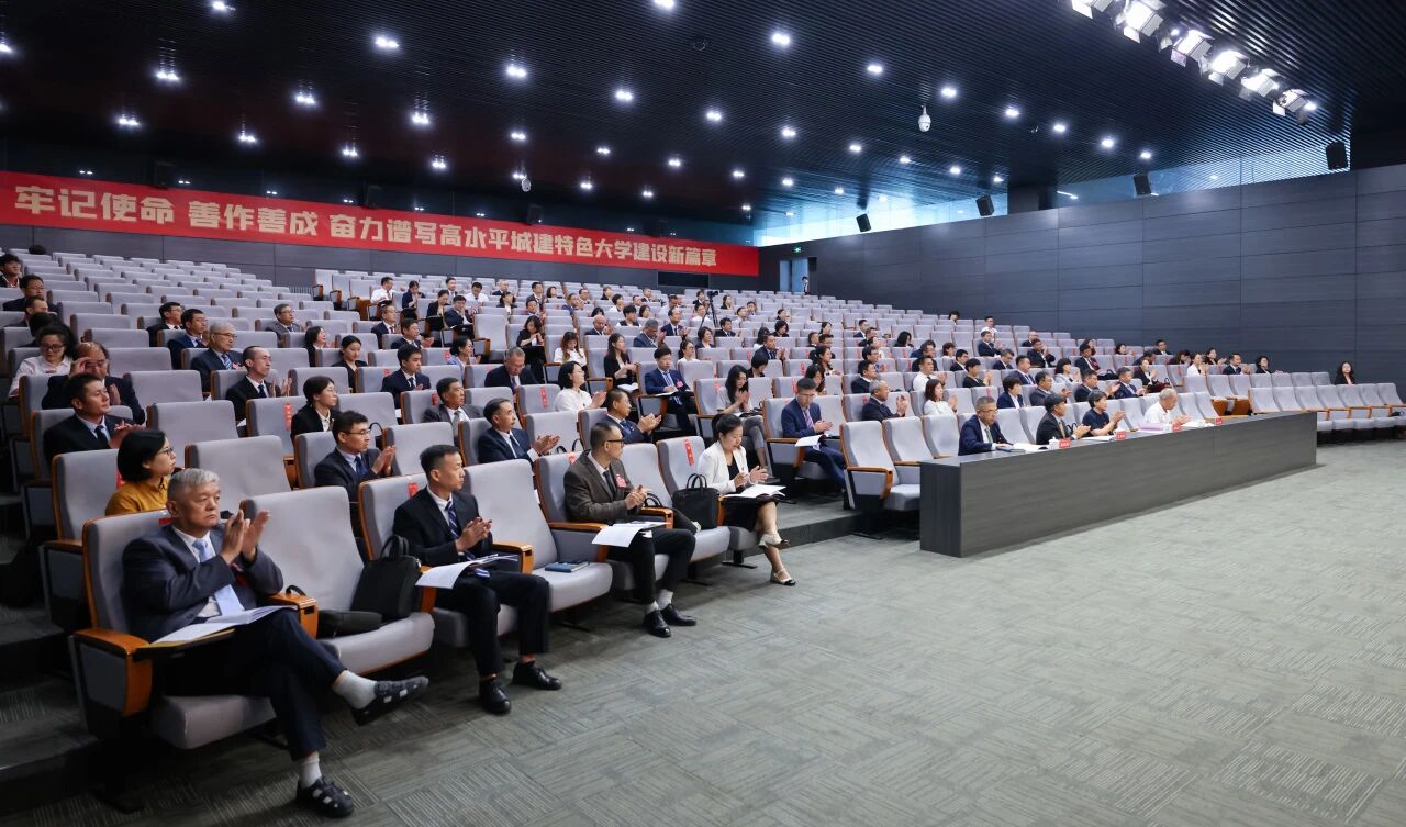 高举中国特色社会主义伟大旗帜,坚持以习近平新时代中国特色社会主义思想为指导,深入贯彻落实党的二十大和二十届二中、三中全会以及市第十二次党代会精神和全国、全市教育大会精神,贯彻党的教育方针,落实立德树人根本任务,深化教育改革,统筹推进教育发展、科技创新、人才培养,破局开新、勇担使命、善作善成,奋力开拓高水平城建特色大学建设新局面,为教育强国建设贡献智慧和力量!