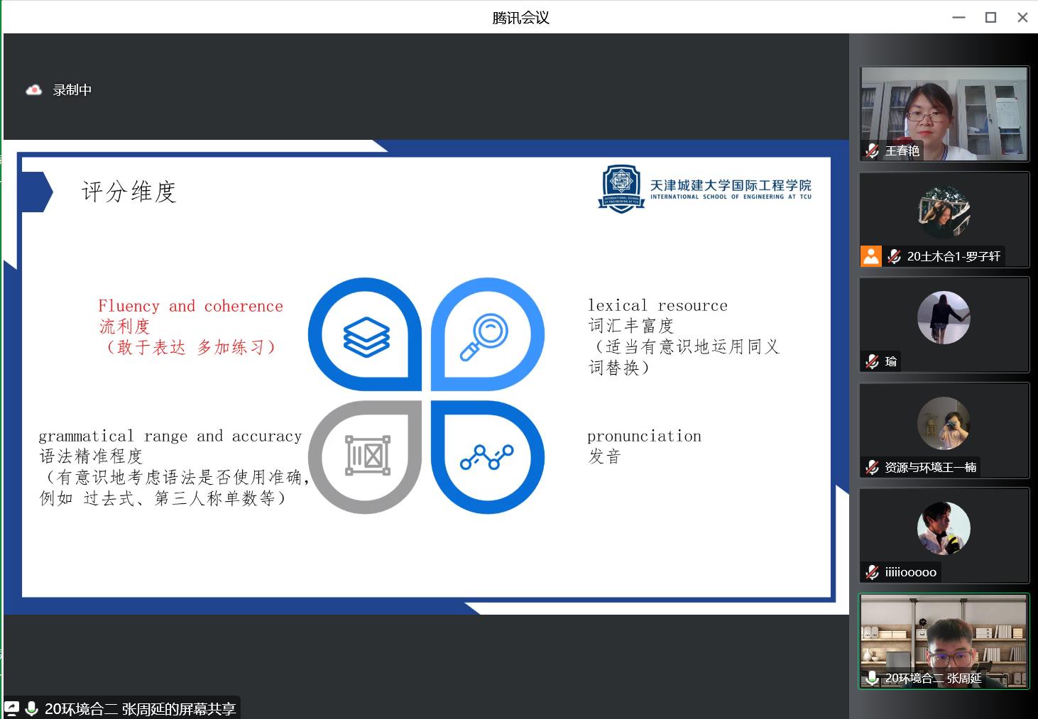 张周延同学通过对比雅思及B2英语的难易程度,详细介绍了B2英语考试的评分标准及打分细则。同时,结合B2英语口语考试真题,从语言逻辑、内容充实、条理层次、礼仪礼貌等方面,为同学们讲解了口试高分技巧。