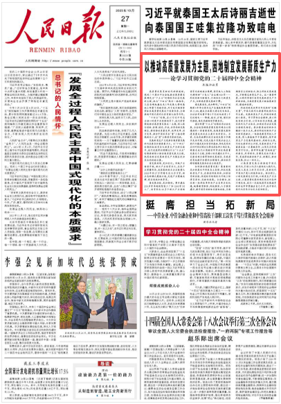 《 人民日报 》( 2025年10月27日 01 版)
