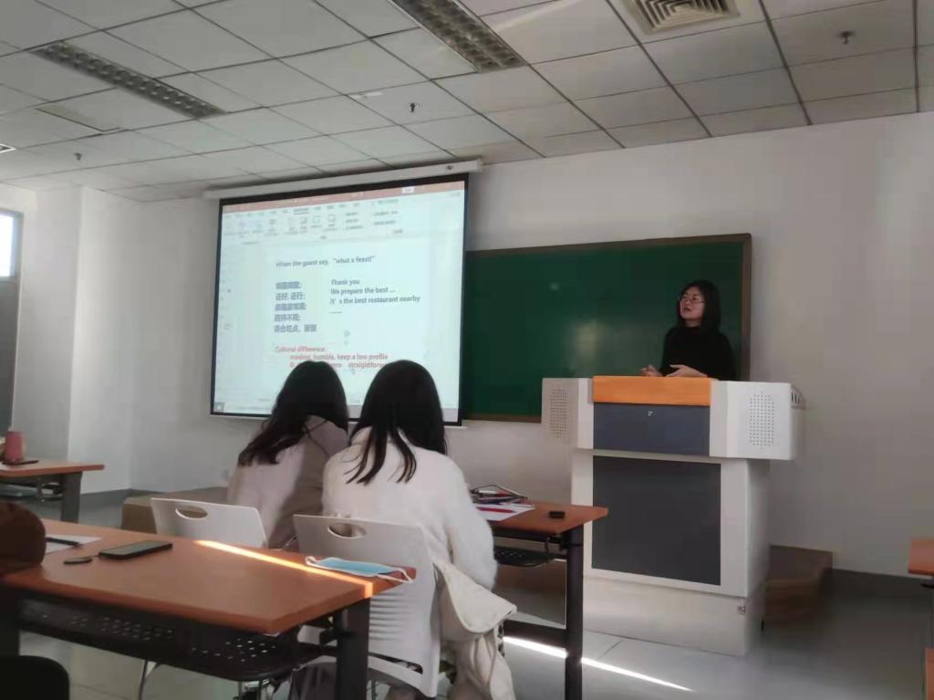 接下来,党政办公室王春艳老师通过列举典型事例对比中西文化差异,并以此为切入点,讲述英语口试的应答技巧,现场同学积极参与,踊跃答题,增进同学们英语口试的信心。