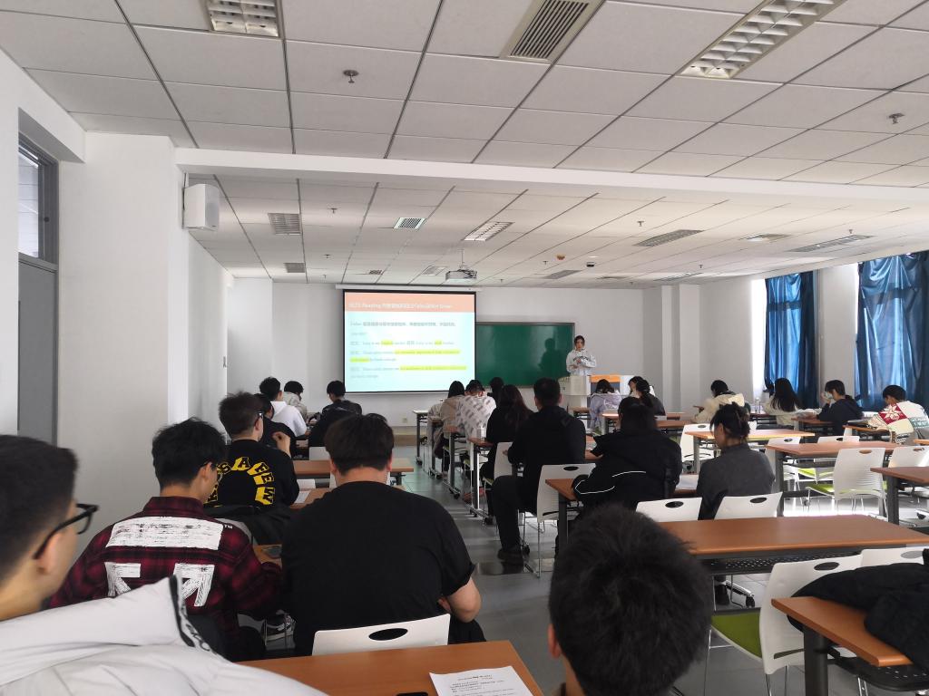 首先由英语员工助理金雪鹏同学对雅思考试及其阅读技巧进行全面讲解,结合自身雅思考试的经验,带领同学们现场解读雅思阅读真题,帮助大家掌握一定的阅读规律和技巧。