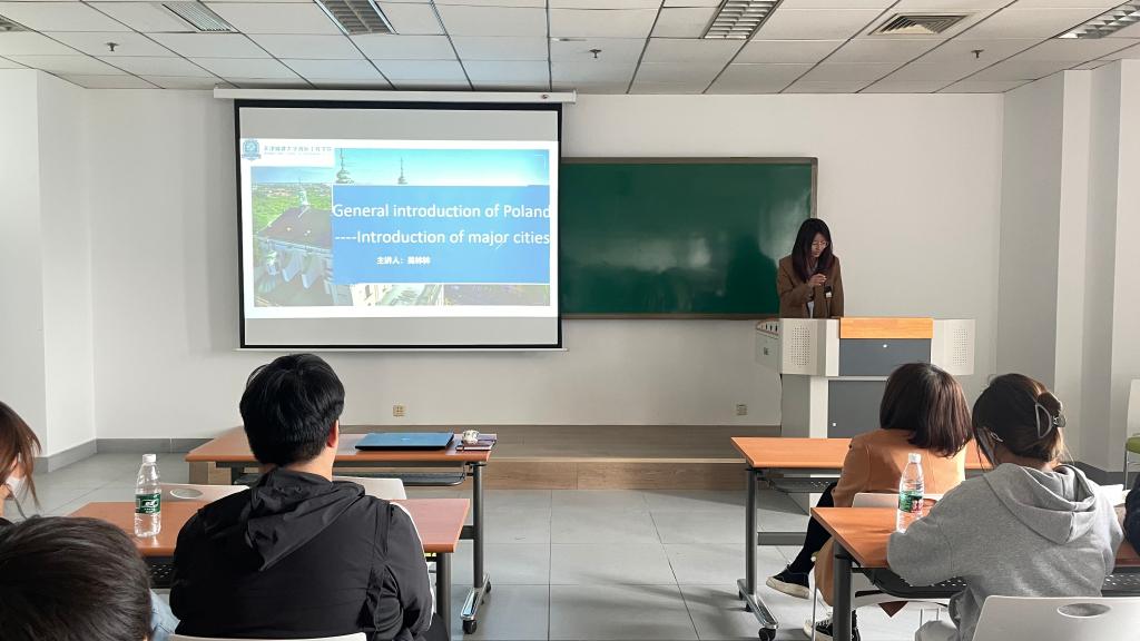 接下来,吴林林同学为大家讲解了欧洲文化系列主题之波兰城市文化介绍,重点讲解了华沙、克拉科夫、比亚威斯托克等城市的标志建筑、著名景点和风土人情,帮助大家更好地了解波兰及留学的城市。